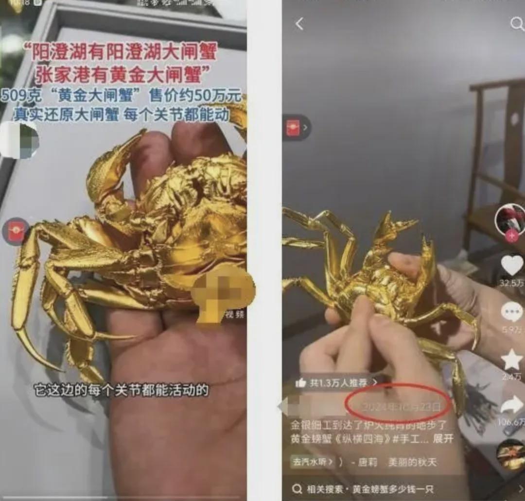 "朋友问我是否与山姆有合作,我当时完全懵了。"吴文胜表示,该黄金蟹制品在外观结构、内部吸铁石位置甚至绒毛走向等细节上,与其重700余克的原创作品几乎完全一致,仅在克重上存在差异。经比对版权证书等材料后,视频发布方已补充标注原创作者信息。