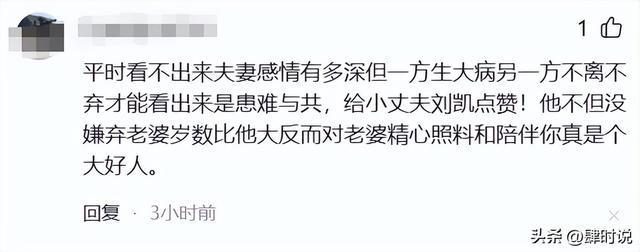而刘凯总是笑着说:"我当初娶她,就没想过要靠她什么。她是我老婆,照顾她是我该做的事。只要她还在,这个家就是完整的。"
