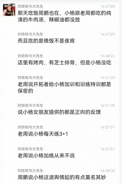 前中国男篮国手王仕鹏也公开为杨瀚森发声。他表示:“之前看到杨瀚森打完湖人后去吃饭的照片,网上又在说‘怎么又去吃烧烤,这么晚还去吃’。我们打球的时候,比方说7点比赛,三四个小时之前会有一个茶点,基本就没有晚饭这一说。”王仕鹏进一步解释:“茶点之后到7点比赛,再到11-12点打完比赛,人家吃的是正常的晚饭。不是说我7点半比赛,7点吃完晚饭就打,比赛日赛前只吃点香蕉和喝咖啡,直到比赛打完,才吃真正意义上的晚饭。”