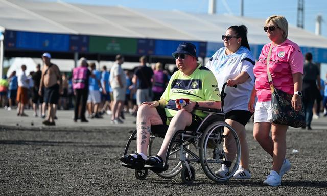 2023年伊斯坦布尔欧冠决赛之夜,对《卫报》记者艾利斯·帕尔默而言,既是见证曼城登顶的荣耀时刻,也是作为残障球迷经历最艰难出行的真实写照。当他在母亲陪同下,试图从市区前往体育场时,街道的高低落差、坑洼不平的道路和碎石尘土,让轮椅寸步难行。尽管母亲奋力协助,四周人声鼎沸,他却像被隔绝在盛宴之外,这种无力感令人心酸。