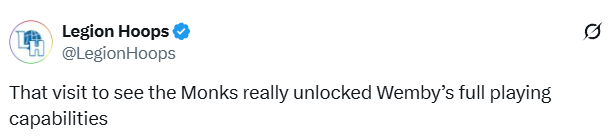 美国媒体Legion Hoops在点评文班亚马的蜕变时,特别提到其今夏的特殊经历:“那次拜访中国少林武僧的训练之旅,彻底激活了这位法国天才的全部潜能。从身体协调性到精神意志力,都得到了质的提升。”