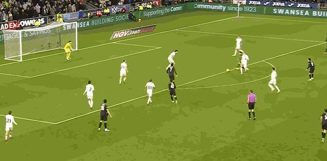 比赛第12分钟,斯旺西抓住反击机会,贡萨洛·弗兰科在禁区弧顶处接队友传球后,稍作调整直接推射,皮球划出一道美妙的弧线直挂球门死角,帮助主队1-0取得领先。这一进球让现场球迷陷入狂欢,也让曼城陷入被动。