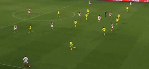 阿布林送出妙传,吉拉西禁区内推射得手,南特1-1追平比分。