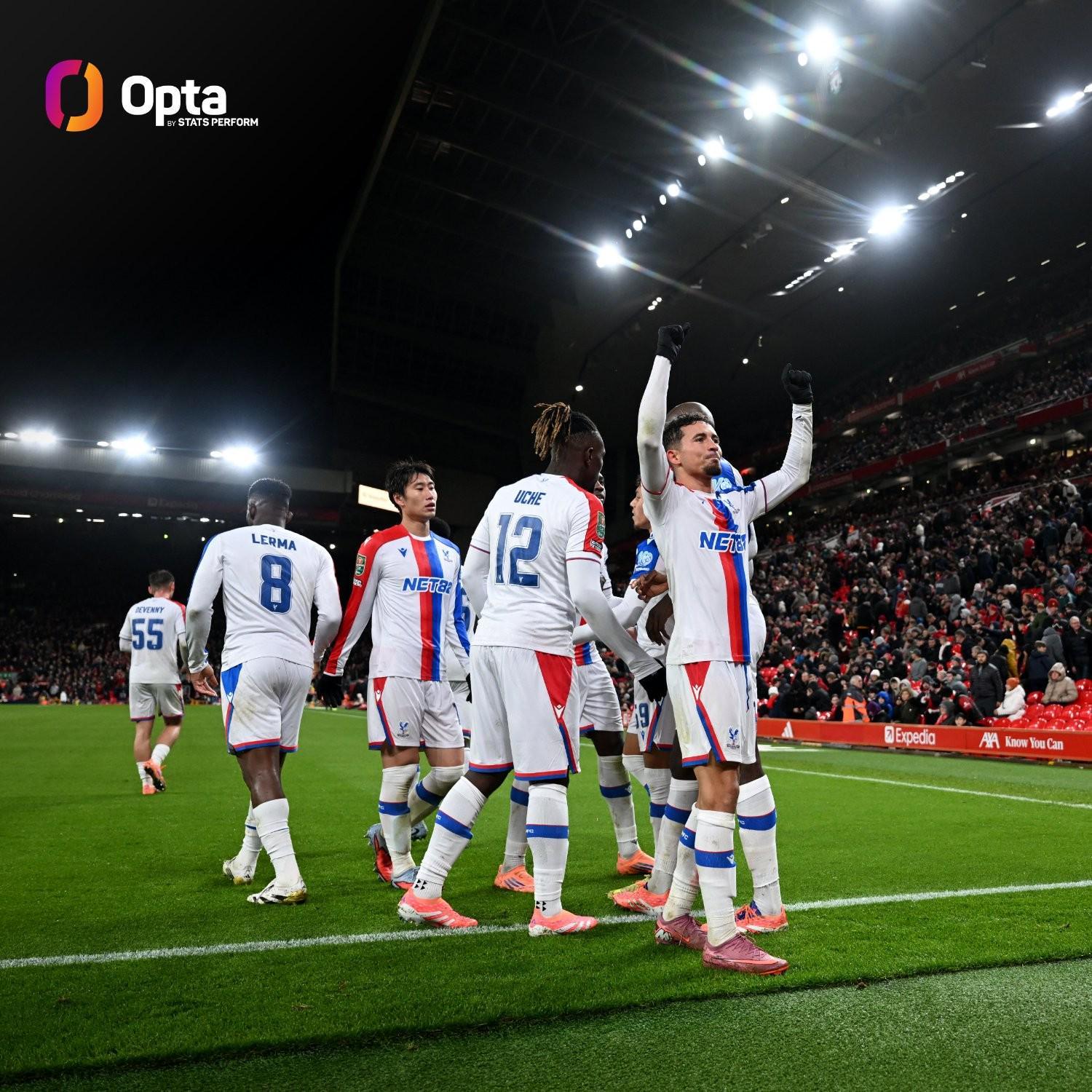 在本赛季英格兰联赛杯第4轮的焦点对决中,利物浦坐镇安菲尔德球场却遭遇滑铁卢,以0-3的悬殊比分负于水晶宫。这场失利不仅终结了球队近期微弱的反弹势头,更创下了一项尘封90年的尴尬纪录——自1934年2月足总杯0-3负于博尔顿流浪者后,利物浦首次在国内杯赛中于主场被对手净胜三球且零进球。