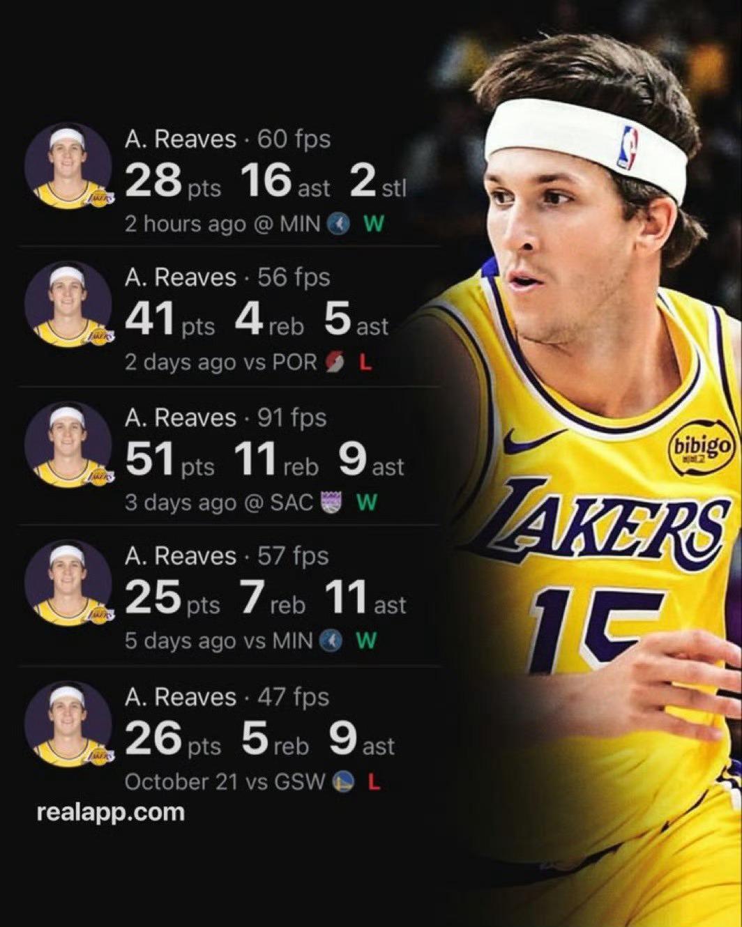 相比绝杀球,里夫斯送出的16次助攻更具战略价值。他通过精准的传球撕破防线,让队友获得大量空位机会。此役爆砍27分的拉拉维亚赛后直言:"我的每个进球都来自里夫斯的传球。"数据显示,近三战场均40分10助攻的里夫斯,成为1970年杰里·韦斯特后首位达成此壮举的湖人球员。更惊人的是,他赛季前5场已斩获171分50助攻,创下队史首次在赛季前五战达成150分50助攻的纪录。