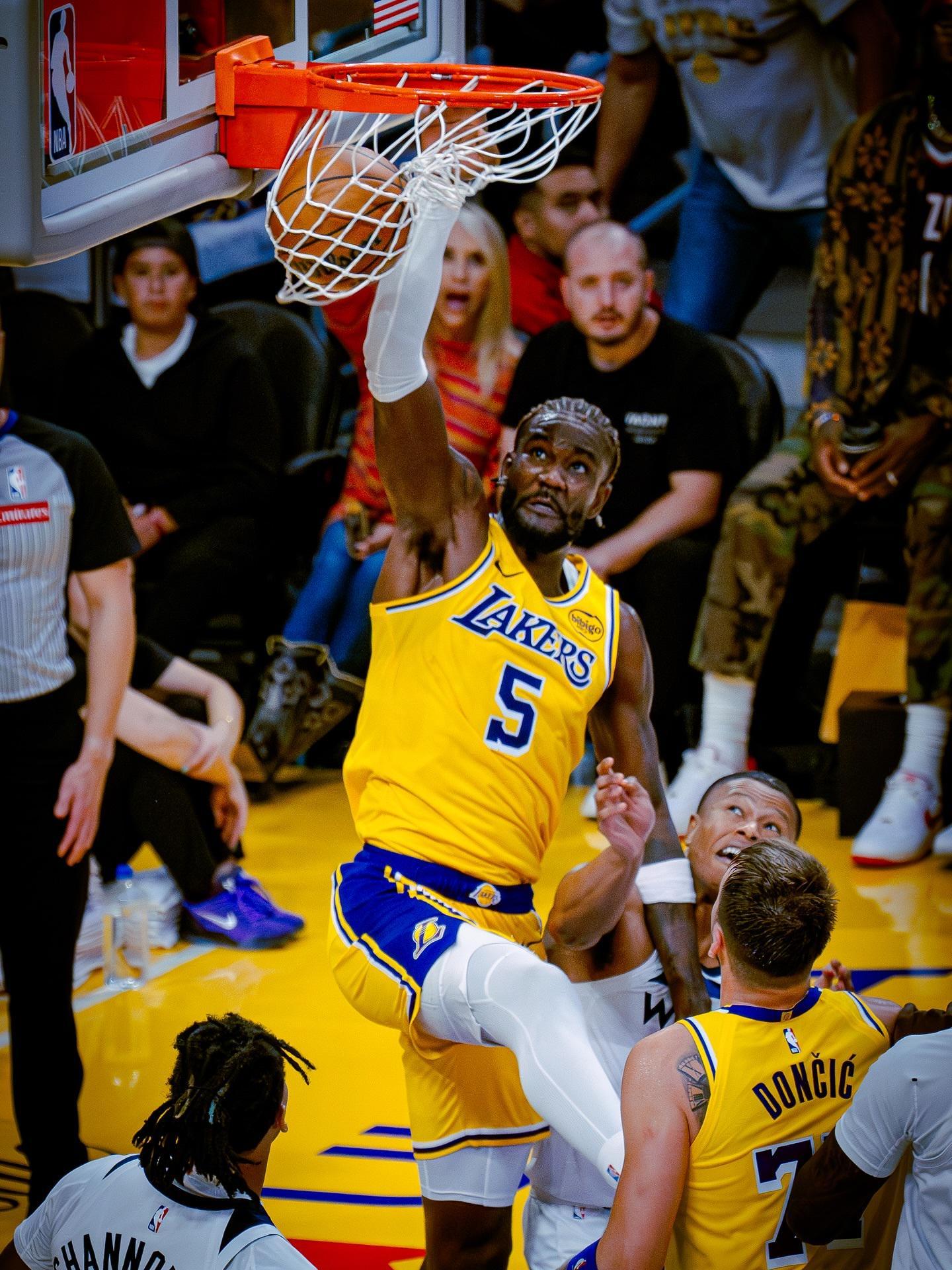 当众人聚焦里夫斯时,中锋艾顿正悄然完成蜕变。面对戈贝尔、里德和兰德尔的三重围剿,这位2米13的内线巨兽两战森林狼合计砍下31分18篮板4盖帽,投篮命中率高达68.2%。相比上赛季海斯面对森林狼内线时的手足无措,艾顿的篮下终结和护框能力堪称降维打击。本场他不仅贡献17分10篮板,更通过积极的卡位为队友创造抢板机会——范德比尔特摘下12个篮板,八村垒也有5个进账,而戈贝尔两战湖人仅抢到13个篮板的数据,更凸显出艾顿的战略价值。