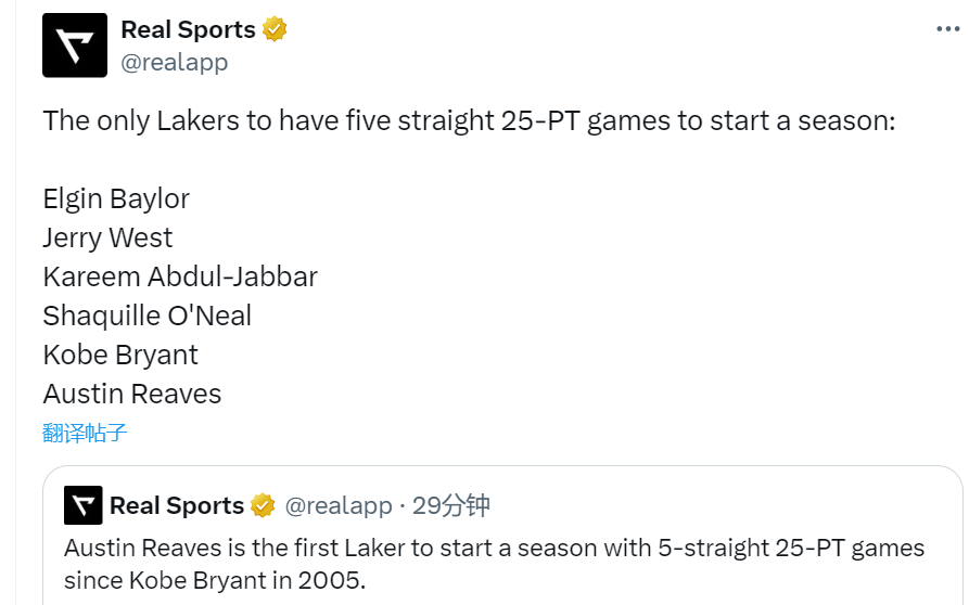 里夫斯此役创造了多项湖人队史纪录:他是球队首位在赛季前5场比赛砍下至少150分50助攻的球员;连续5场得分25+,成为自2005年科比后首位达成此成就的湖人球员,队史第6人,比肩贝勒、韦斯特、贾巴尔、奥尼尔和科比等传奇。在连续五场场均34分以上的真实命中率排行中,里夫斯以68.7%位列历史第三,仅次于库里和乔丹。