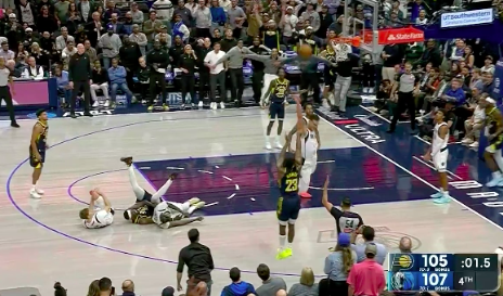 比赛最后时刻,步行者队获得绝杀良机。丹尼斯在执行第二罚时故意不中,通过拼抢进攻篮板将球权重新掌握。当球弹至三分线外时,处于完全空位状态的内史密斯接球出手,然而这记可能改写比赛结果的三分球最终打铁偏出,步行者队也因此遗憾落败。
