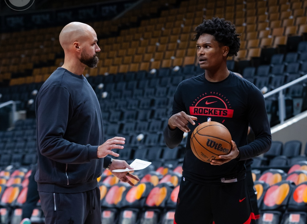 北京时间10月30日,NBA常规赛激战正酣,休斯顿火箭队奔赴多伦多挑战猛龙队。此前火箭以1胜2负的战绩暂列西部第11,开赛阶段连续不敌雷霆与活塞后,终于在上一场大胜篮网找回状态。本场比赛主教练乌度卡调整阵容,让奥克吉进入首发,亚当斯担任替补,此举让小贾巴里·史密斯、杜兰特和申京等核心球员回归熟悉位置,但阿门·汤普森在首发控卫位置上的表现未达预期——球权增加后效率下滑,失误增多。尽管存在赶鸭子上架的无奈,但在交易受限和薪资空间紧张的情况下,球队只能选择内部挖潜。