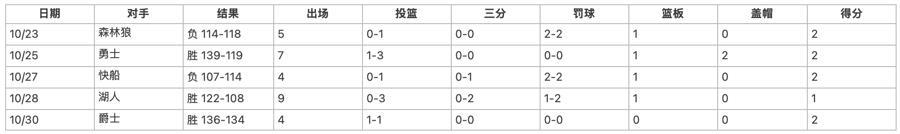 无论如何,现在下定论为时尚早。首先样本太少:总计29分钟、9次出手很难代表真实水平。开赛的这5战全部是强度不低的西部对手(森林狼、勇士、快船、湖人、爵士),且他更多在替补与比赛碎片时间登场,容错率与参与度都有限。此外,教练组在季前赛反复强调他“正在变得更好”,相信球队内部对他的培养方向是比较清晰的。