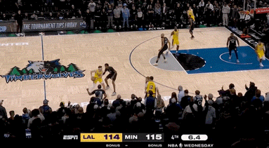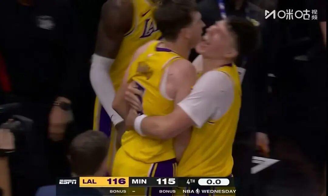 森林狼没有坐以待毙,回敬了一波11-2。可是末节的小李仍在延续他的火热手感。正当所有人都以为湖人即将客场取胜时,森林狼用一波奇绝三分又追到关键时刻。