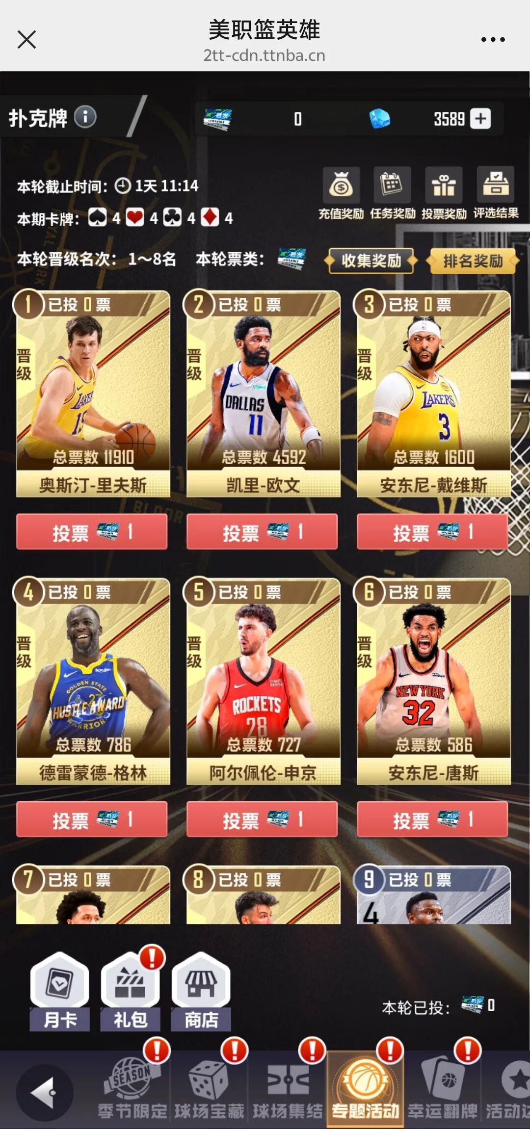 NBA英雄2票选本赛季扑克牌来了!现役联盟球星,你会把票投给谁?今天我必须投小里一票,给我晋级!别忘了!投票后还能赢取宝箱!