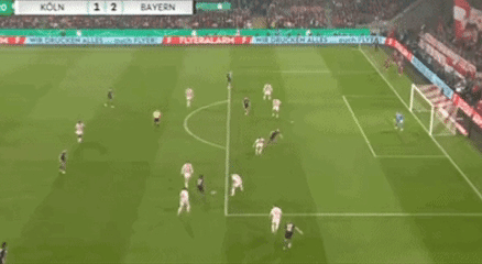 此役面对主场作战的科隆,拜仁展现了强大的实力。科隆队只能摆出大巴车阵型,全力防守反击。比赛第30分钟,科隆利用角球机会由阿赫高高跃起头球破门,科隆1-0领先拜仁,主队意外取得领先。