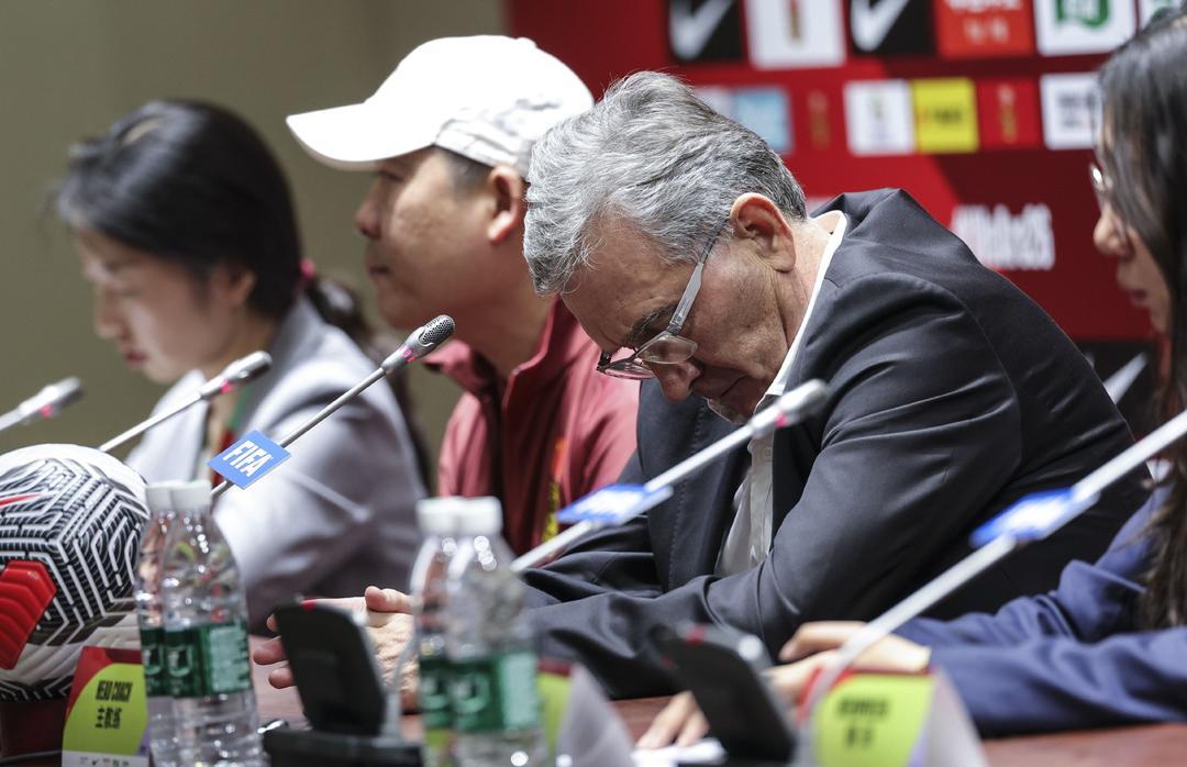 6月6日,中国队主教练伊万科维奇(右二)在赛后新闻发布会上。新华社记者 潘昱龙 摄