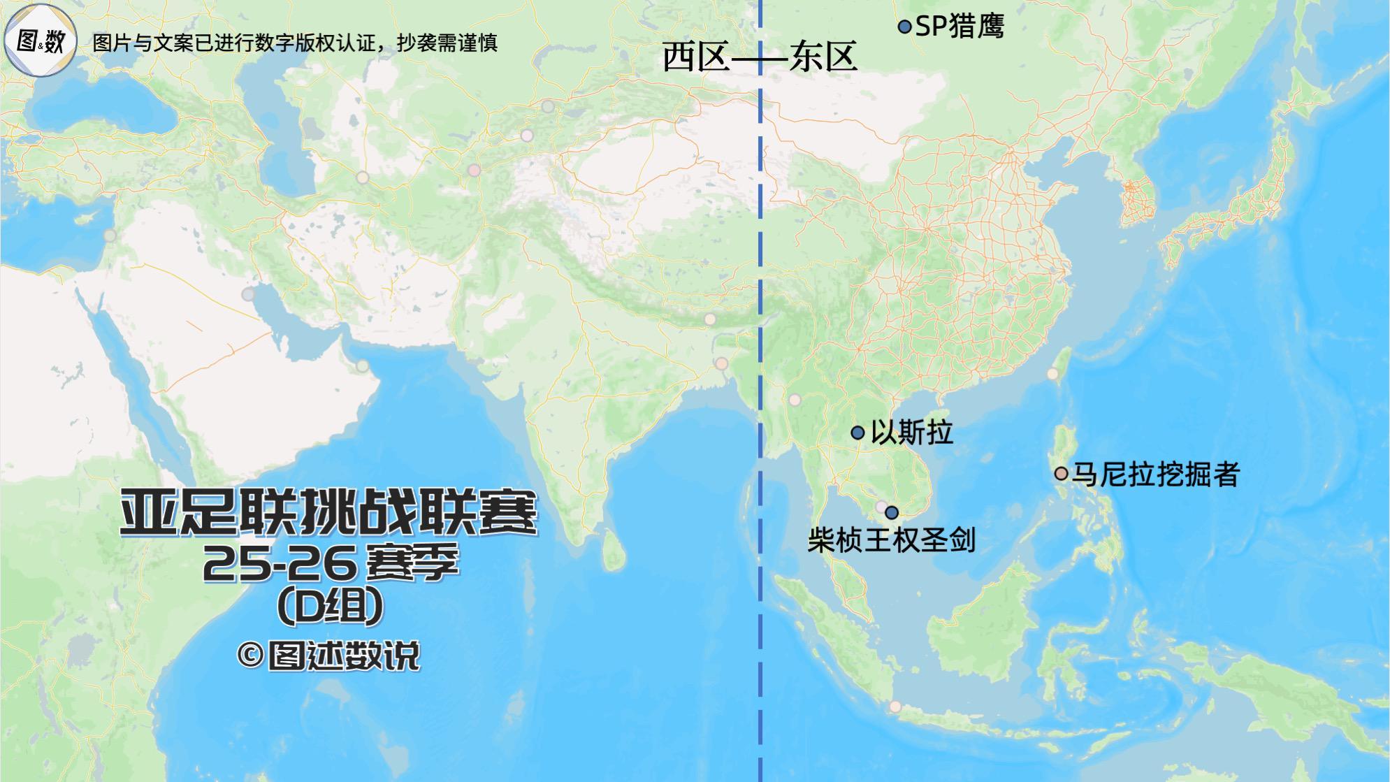 为减少各参赛球队的差旅开支,亚挑联的小组赛阶段是赛会制,五个小组各自选择组内一个成员的所在地集中办赛,我们从中资球队马尼拉挖掘者所在的东一组(D组)开始,从东至西,依次讨论各小组的参赛球队和赛场。