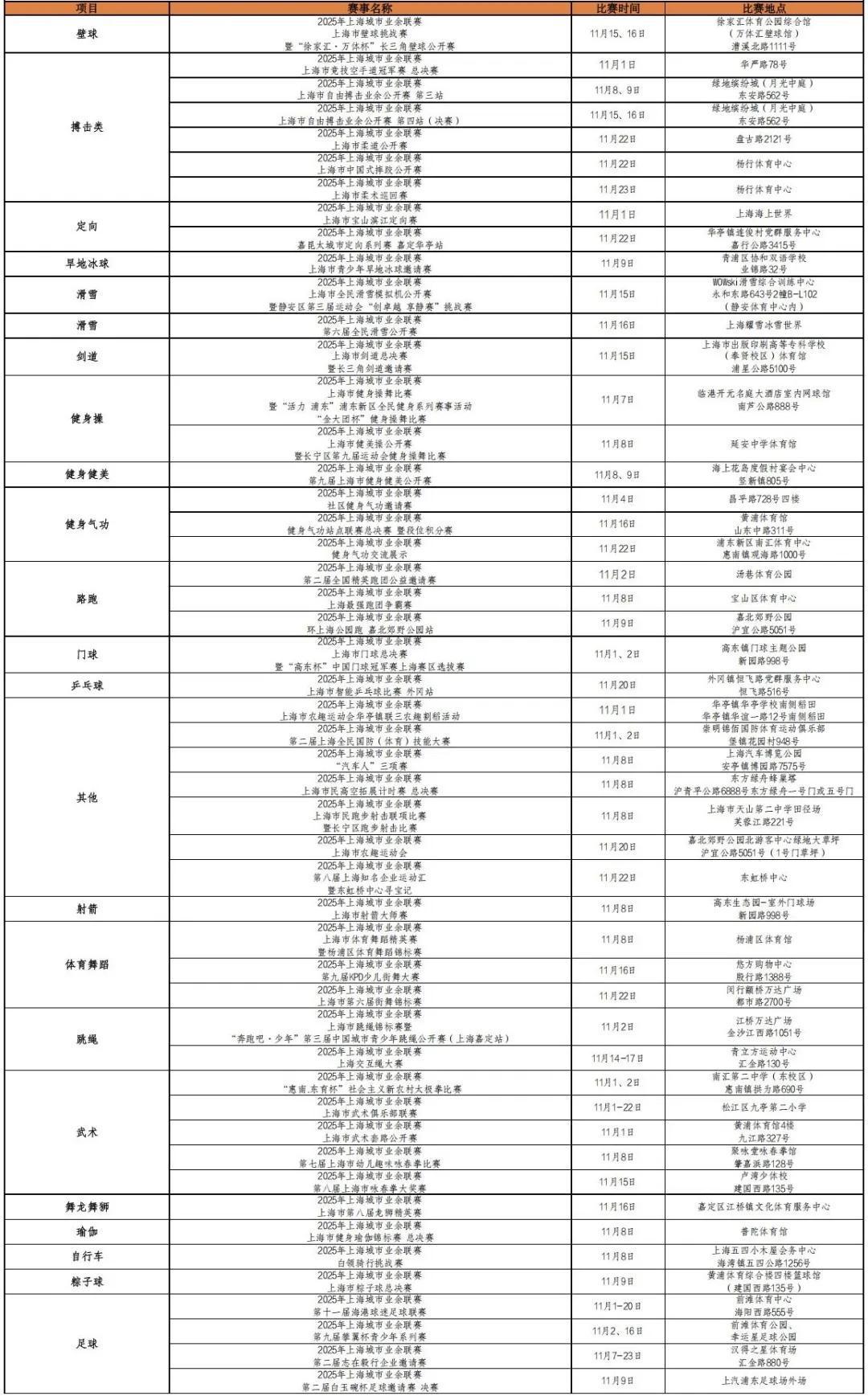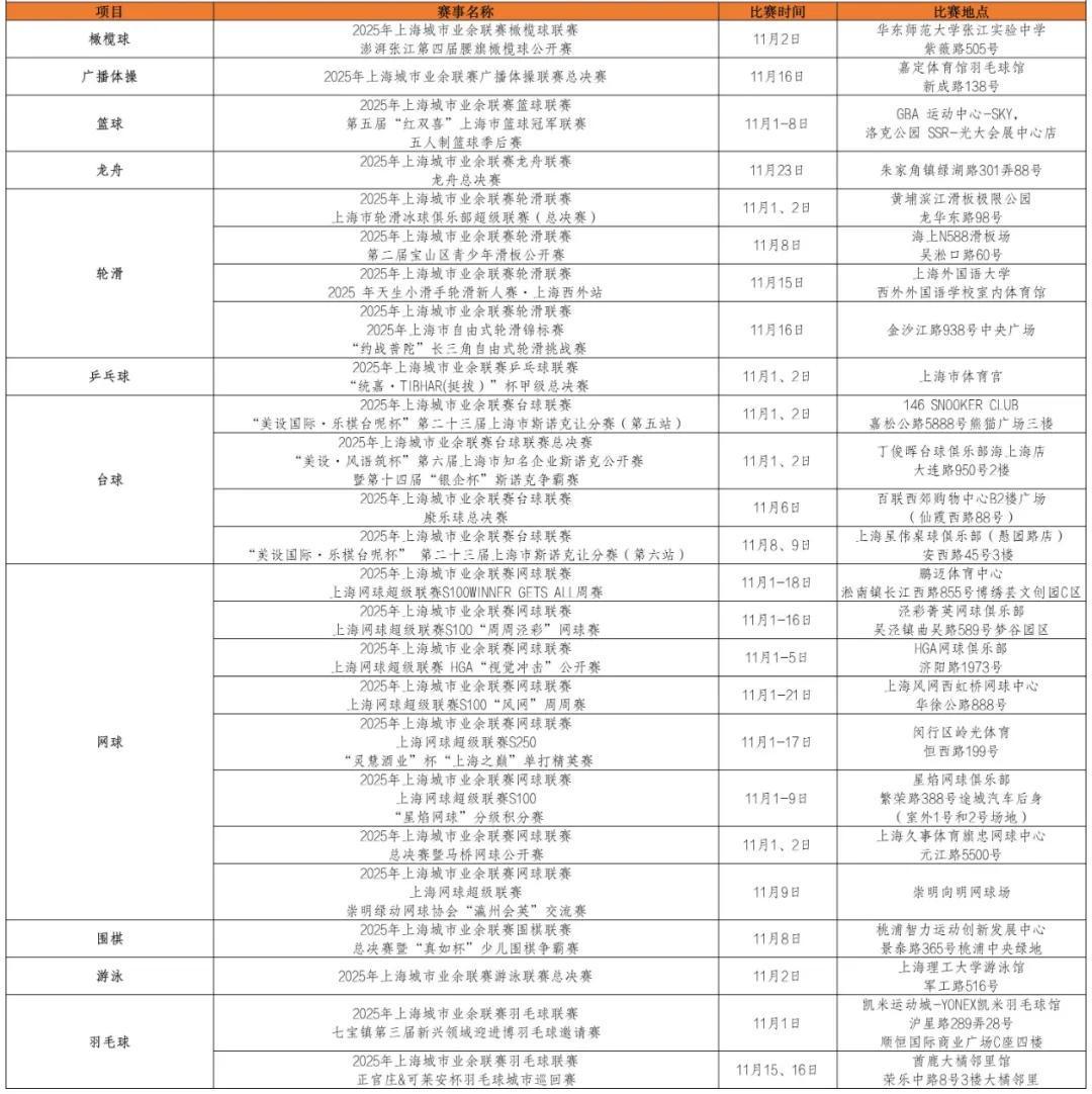 2025年上海城市业余联赛11月赛事目录已为你准备就绪,快来收藏这份全攻略,一起释放运动热情,共赴热爱之约吧!无论你是专业选手还是业余爱好者,都能在这里找到属于你的舞台,展现你的风采!
