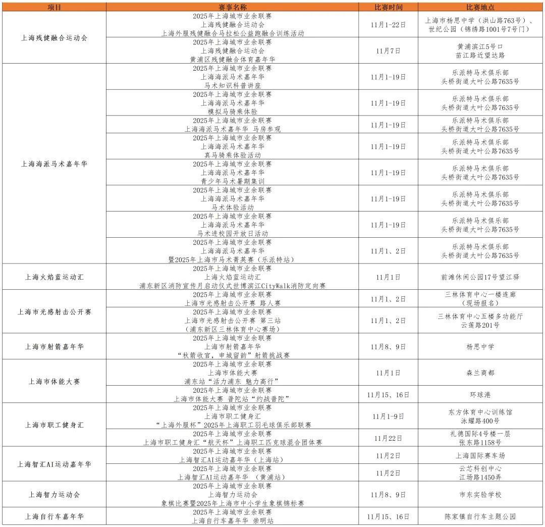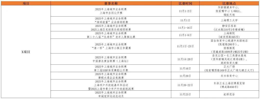 2025年上海城市业余联赛 11月赛事目录抢先看