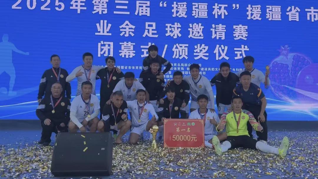 10月27日,2025年第三届“援疆杯”援疆省市业余足球邀请赛在墨玉县京玉中学体育场圆满收官。经过7天的激烈角逐,山东援疆代表队以优异表现摘得桂冠,新疆和田代表队与北京援疆代表队分获亚军和季军,三支球队共同书写了这场足球盛宴的精彩篇章。