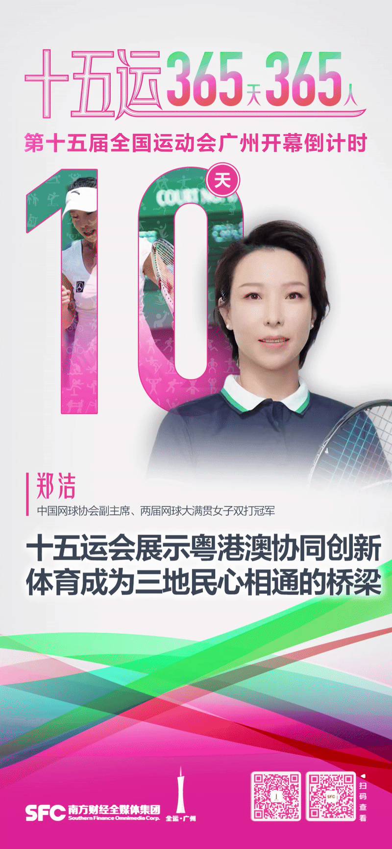 距离第十五届全国运动会开幕仅剩十天,中国网球协会副主席、两届网球大满贯女子双打冠军郑洁,正以运动员的拼搏精神与中国网球运动推动者的责任担当,密切关注着这场由粤港澳三地联合承办的体育盛会。