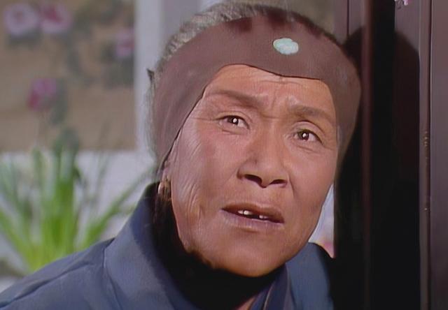 皮肤弄得黝黑,脸上画满褶子,头发花白盘起来,额前系个粗布抹额,一看就是常年干农活的乡下老太太。