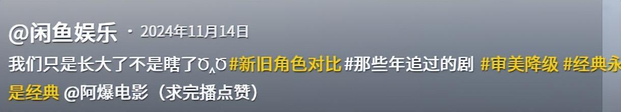 只能说,经典角色不是谁都能演的,没那个颜值和演技,就别来糟蹋经典了,不然只会“一剧毁所有”。