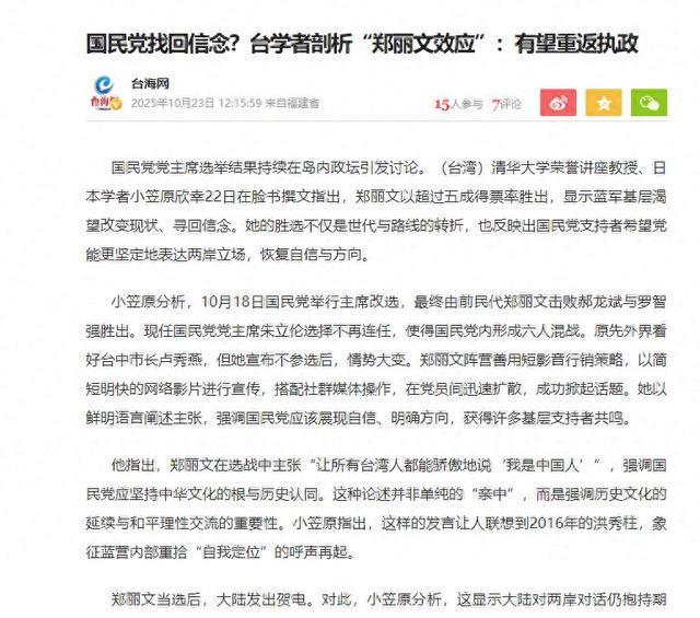 郑丽文胜选之后国民党内有很多人嫌她太“亲中”,因为现在台湾岛内的政治环境和之前已经不能比了。