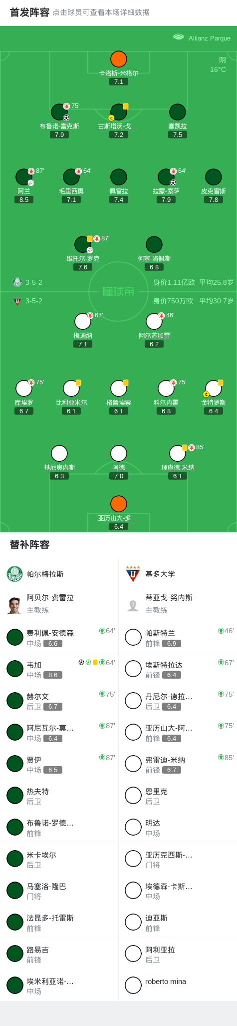 回顾整场比赛,帕尔梅拉斯在进攻端表现出色,多点开花。拉蒙-索萨、布鲁诺-富克斯和韦加的进球都展现了球队强大的进攻火力。而在防守端,球队也表现出色,没有给基多大学太多机会。