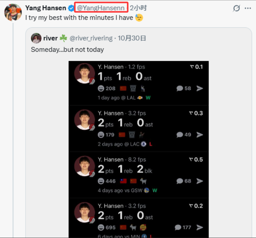 北京时间10月31日,美国权威体育媒体Sporting News发布了一篇引发争议的报道,标题为“开拓者人气新秀杨瀚森以可爱帖子回应质疑者”。然而这场风波很快被证实是乌龙事件——发声者并非杨瀚森本人,而是一个精心伪装的高仿账号。