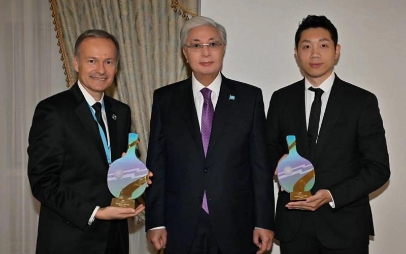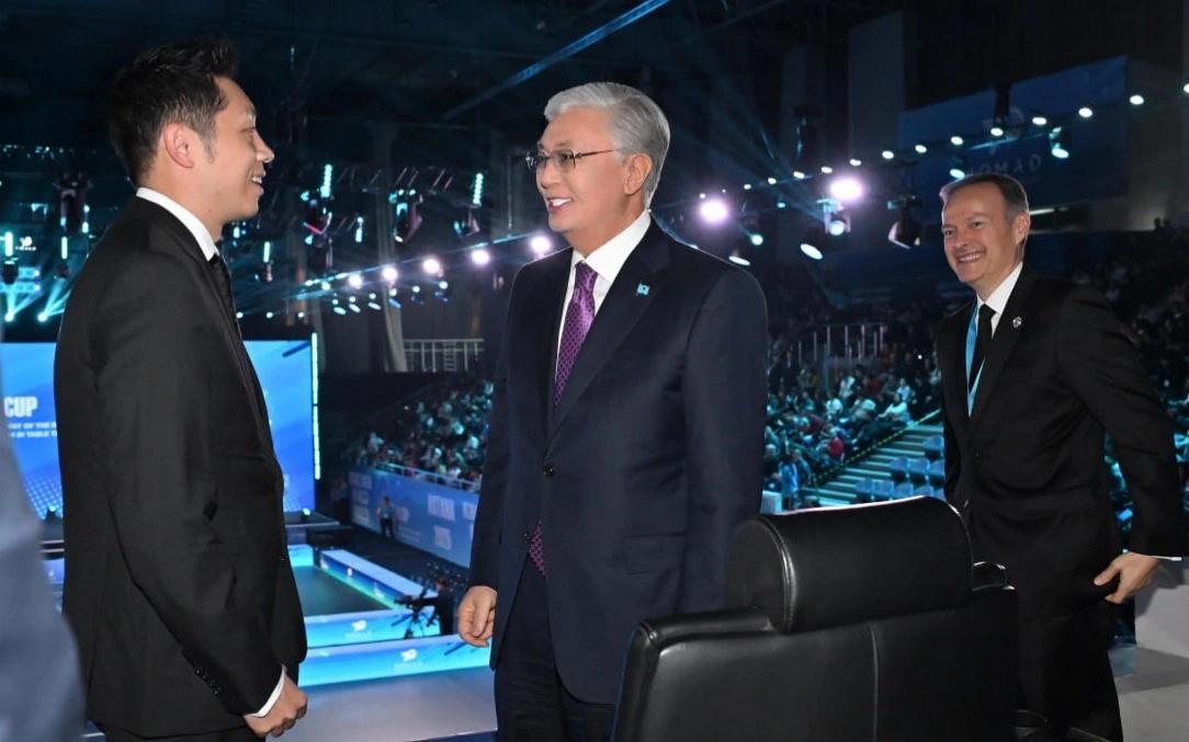 10月29日下午,托卡耶夫总统亲临现场,观看了这场备受瞩目的总统杯公开赛决赛。期间,他与包括许昕在内的多位乒坛名人进行了深入交谈,这些名人包括世界冠军施拉格、萨姆索诺夫、方博,以及世界亚军朱世赫等。