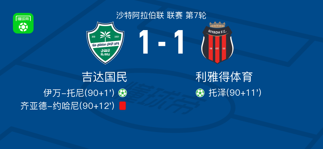 下半场补时第1分钟,吉达国民球员伊万-托尼罚入点球,为球队打破僵局。