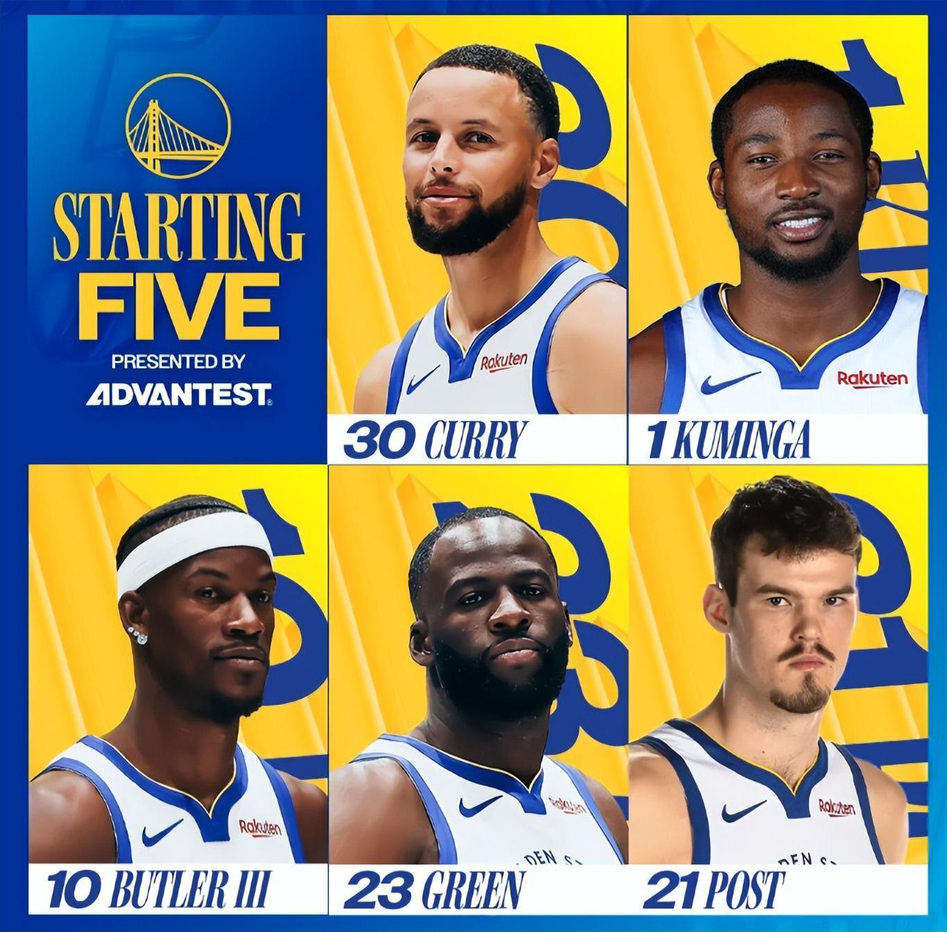 首发阵容方面,勇士队科尔排出的最新首发五人组为:斯蒂芬-库里、吉米-巴特勒、乔纳森-库明加、德雷蒙德-格林、昆滕-波斯特;雄鹿队的首发阵容则为:莱恩-罗林斯、 小加里-特伦特、AJ-格林、凯尔-库兹马和迈尔斯-特纳。