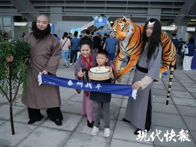 在苏超常规赛泰州对宿迁的中场表演中,“武松打虎”的名场面冲上热搜,也让“水浒摇篮”泰州兴化吃了一大波流量。在“双城寻脉”沉浸体验环节中,武松、孙二娘、鲁智深等水浒人物以及南通“通通”玩偶等将化身NPC角色,与游客和球迷进行沉浸式、零距离的互动,让大家仿佛置身于水浒世界之中。