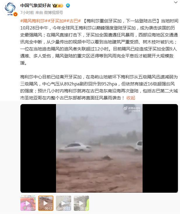 据中国气象爱好者消息,当地时间10月28日中午,“梅利莎”以巅峰强度登陆牙买加,成为该国历史上遭遇的最强飓风。狂风暴雨导致全国交通通讯中断,西部沿海地区受灾尤为严重:视频画面显示,建筑物外墙剥落、树木被连根拔起,一位追风者在风暴中失联超过12小时。截至目前,飓风已造成牙买加9人遇难、多人受伤,重灾区需待风雨平息后才能展开大规模救援。