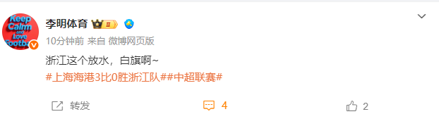 比赛结束后,媒体人的质疑声愈发强烈。博主“李明体育”直言:“浙江这个放水,白旗啊。”博主“魏老师”也表示:“至于浙江的态度呢,我一直觉得无欲无求的球队最后没战斗力是比较正常的,也没有必要站在道德制高点去要求什么,只是泰山队、西海岸、英博更值得称赞。”