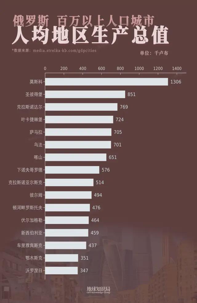 由此可见,俄罗斯的经济极化和一城独大到了什么程度。
