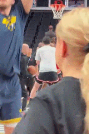今天能对位吗?杨瀚森和约基奇赛前同框热身训练