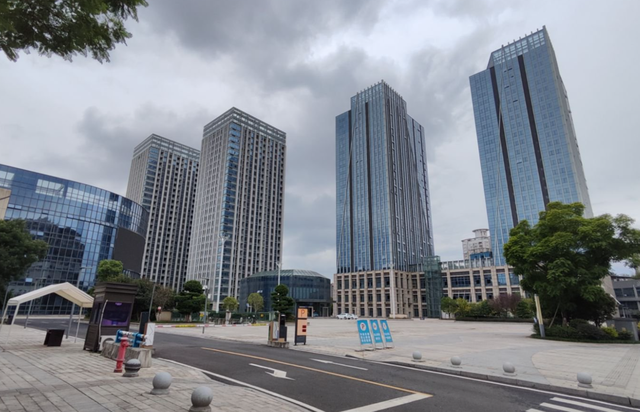 这几栋高楼前面两栋是写字楼,后面两栋像是公寓,造型看起来还是比较现代的,印象中这些房子已经修好很久了。