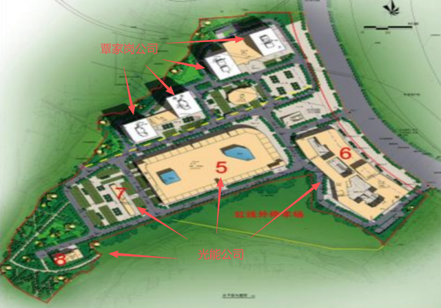 光能公司拿下南侧的几个大型主体商业,而覃家岗塑料制品公司则分到北边的几栋高楼,形成如今的局面。