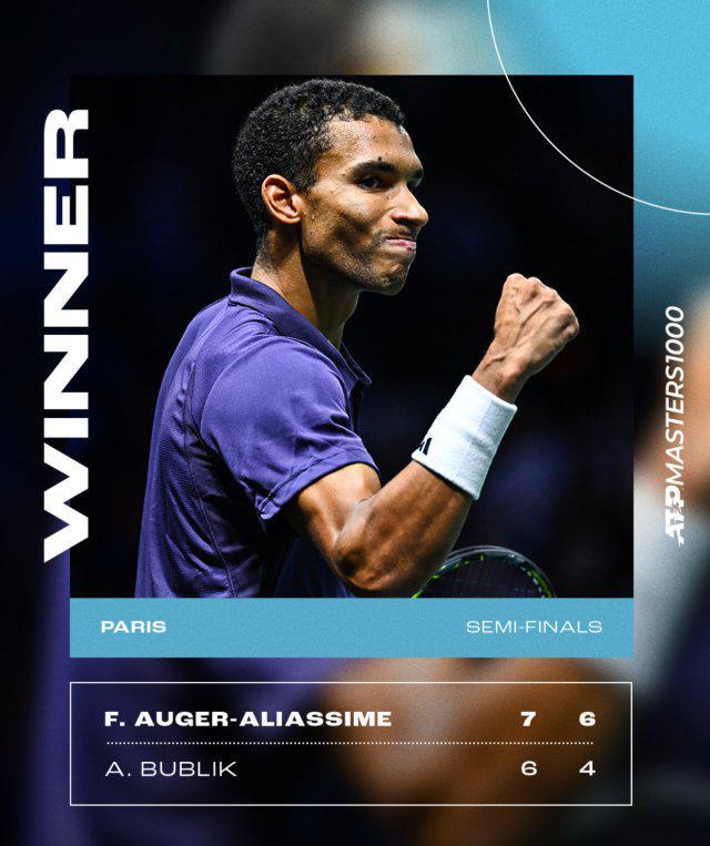 北京时间11月1日,在2025年ATP1000巴黎大师赛男单半决赛焦点战中,赛会9号种子阿利亚西姆展现出色竞技状态,以7比6(3)和6比4连下两城,大比分2比0完胜13号种子布勃里克,成功锁定决赛席位。