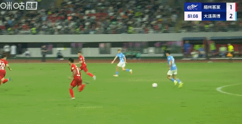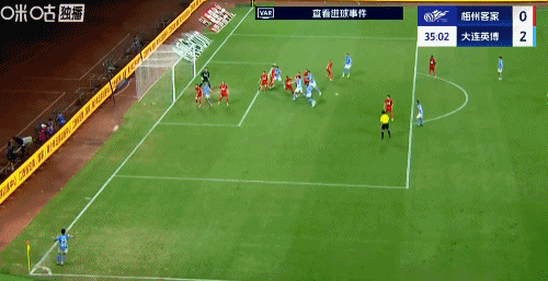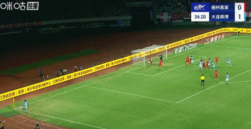 大连英博利用角球机会,毕津浩禁区内头球补射得手,将比分改写为2-0。