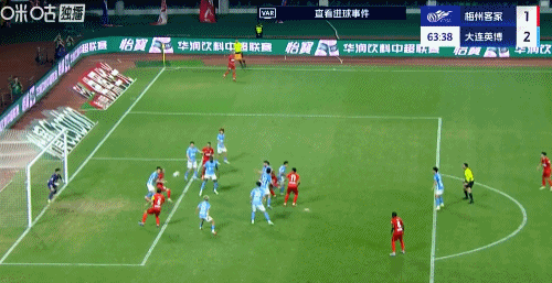 罗德里格边路传中,大连英博后卫马马杜不慎将球顶入自家球门,梅州客家凭借这粒乌龙球将比分扳平为2-2。
