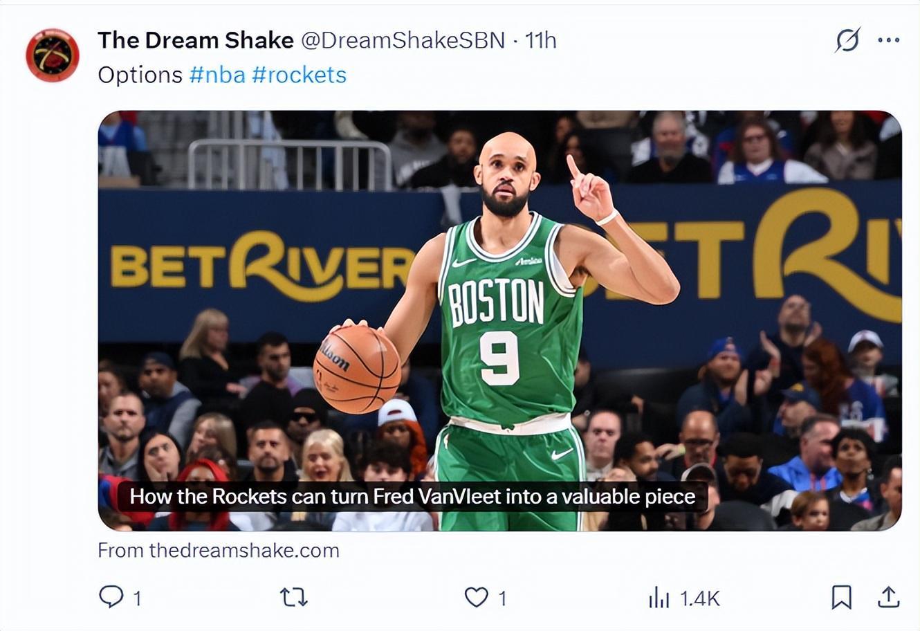 此前,还有休斯顿媒体建议火箭队交易得到绿凯后卫德里克-怀特,并提出了具体的交易方案:用1个首轮签加上范弗利特作为筹码。然而,由于火箭队今夏续约的众多球员都需要在12月16日之后才能被交易,且杜兰特、申京、阿门、小贾、亚当斯等核心球员均为非卖品,因此无法登场的范弗利特自然成为了交易的主要筹码。