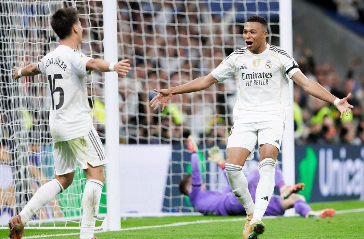 本场比赛前,姆巴佩已连续7场联赛取得进球,状态火热。开场第15分钟,皇马获得点球机会,作为队内第一点球手,姆巴佩冷静推射破门,打破此前国家德比罚失点球的心魔。第31分钟,他再度展现杀手本色:居莱尔左路突破后送出精准挑传,姆巴佩后点凌空垫射直窜死角,短短12分钟内完成梅开二度,帮助球队确立2-0领先优势。