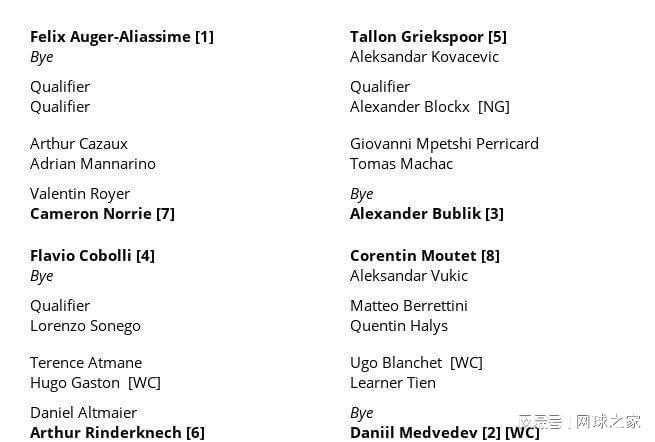 前法网八强埃切维里、本赛季饱受伤病困扰的美国人科达等选手也出现在了下半区。他们的表现同样值得关注。