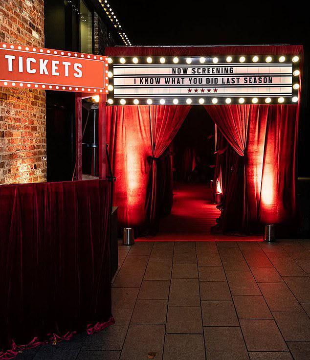 当客人们步入派对现场,首先映入眼帘的是一个电影院风格的入口,红色的帷幕缓缓拉开,一个发光的标志赫然在目,宣布着当晚的主题。这一设计瞬间将人们带入了一个充满神秘与恐怖的氛围之中。