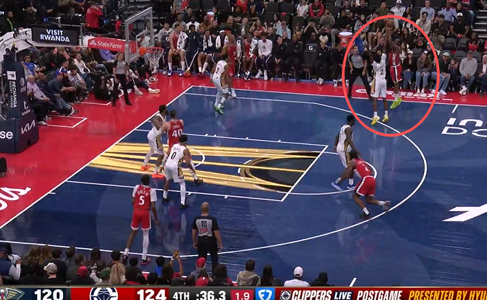 第一次误判:终场前43秒哈登三分遭犯规未吹罚