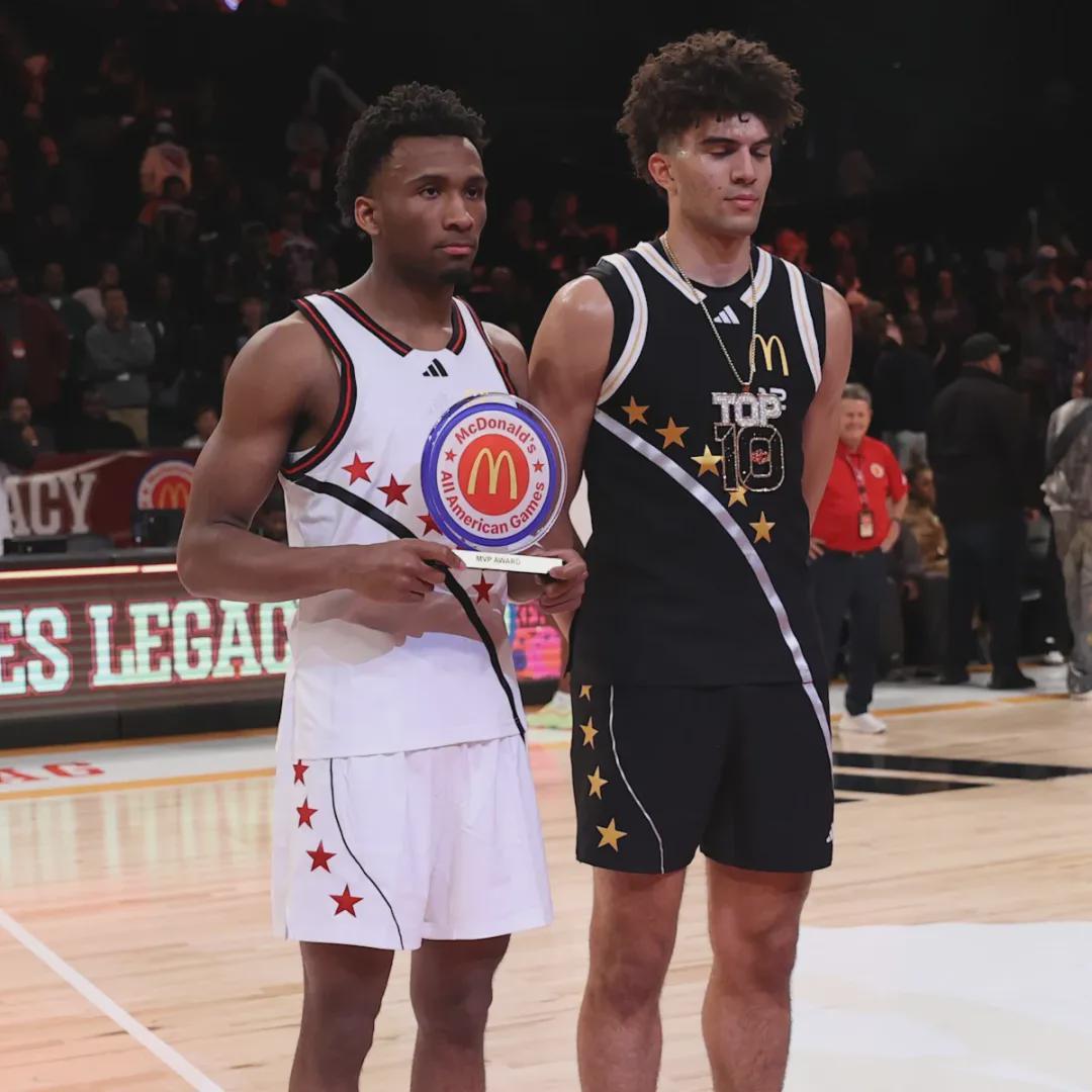 2. 卡梅伦-布泽尔:2007年生,身高2米06,臂展2米13。杜克大学首秀19中12狂砍33分12篮板,展现超强内线统治力;