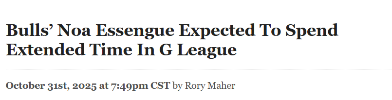 据公牛队随队记者约翰逊透露,从现阶段情况分析,埃森格在新秀赛季初期大概率将在G联赛度过较长时间。这位法国前锋至今尚未代表公牛队出战过任何一场NBA常规赛,而与之形成鲜明对比的是,公牛队本赛季开局表现强势,目前以5胜0负的战绩高居东部联盟榜首。