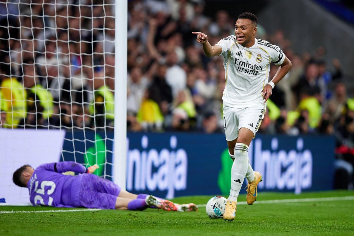 转机出现在第15分钟:马斯坦托诺角球传中引发混战,雷克尼手球犯规,姆巴佩被抱摔倒地,VAR介入后裁判改判点球。第19分钟,姆巴佩冷静推射破门,皇马1-0领先!这是法国前锋连续8轮西甲进球,期间狂轰10球,距离C罗创造的队史纪录仅一步之遥。同时,他以13球登顶五大联赛射手榜。
