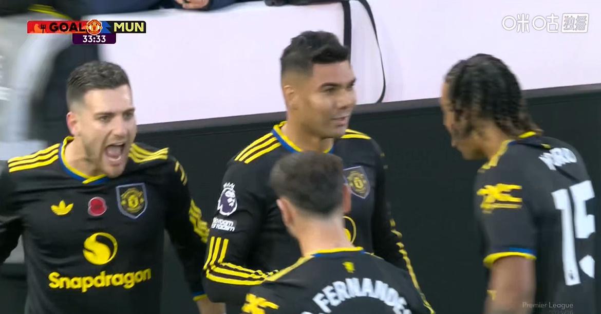 第34分钟,场上出现争议一幕。曼联前场获得角球机会,B费左侧开出角球,卡塞米罗高高跃起头球破门,帮助曼联客场取得领先。这是卡塞米罗连续第二场进球,也是他本赛季收获的第3粒联赛进球,'胖虎'状态火热。